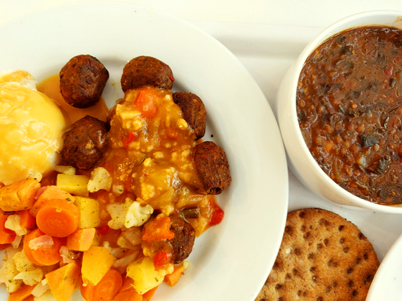 My vegetables ball supposed to come with brown rice and quinoa but they didn't have those so they offered either french fries or mashed potatoes. I chose my vegetables ball with mashed potatoes with some sauce which I couldn't quite decipher. I think it's almost the same sauce as the one for salmon.