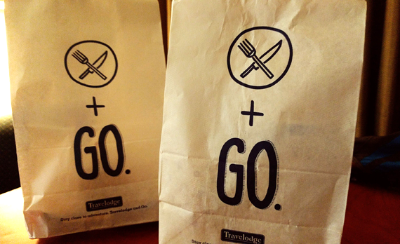 By the time we checked in to Travelodge it was around 8 pm. No rain, surprisingly. We finally out drive the system. But our friendly receptionist at Travelodge told us that it would come because it's Oregon ! Check in was a breeze. She told us that breakfast would be serve at 7 and asked if we would join them. We said no. She presented us two paper bag - grab and go breakfast. How neat !