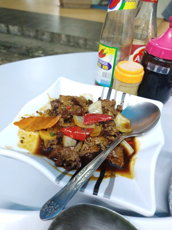 | Black pepper beef. |